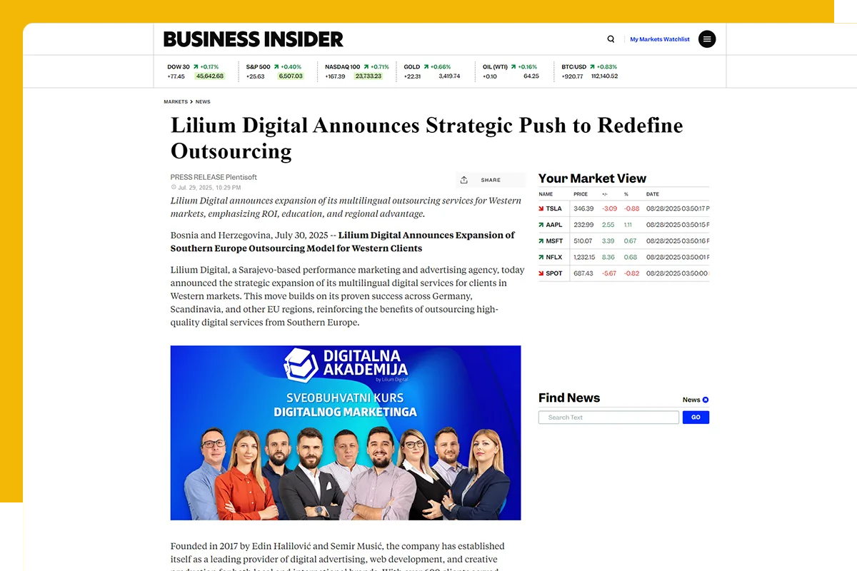 U digitalnom marketingu pravi partner čini razliku. Mi smo Lilium – agencija koja ne radi samo za vas, nego s vama. Više od 800 kompanija nam je već ukazalo povjerenje, jer znaju da smo posvećeni stvaranju konkretnih rezultata.
